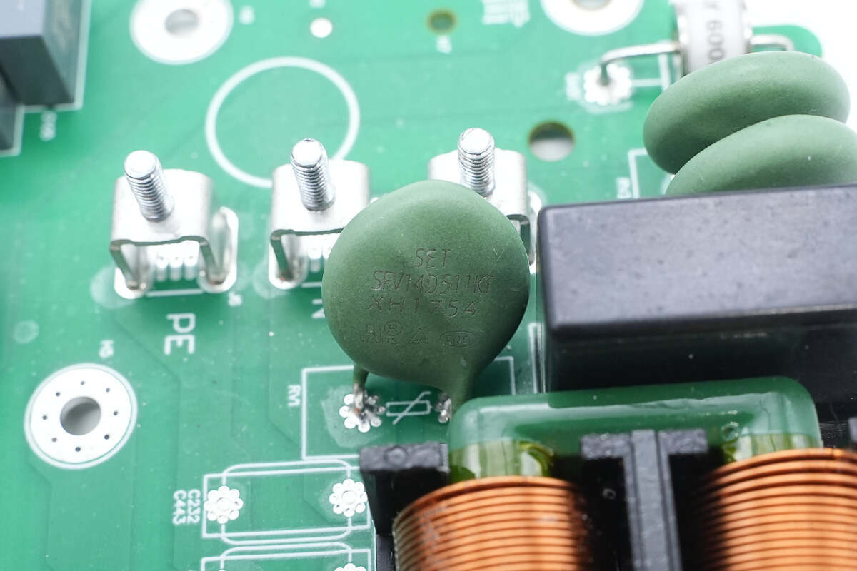压敏电阻来自赛尔特,型号SFV14D511KT,压敏电压510V,用于吸收雷击浪涌。