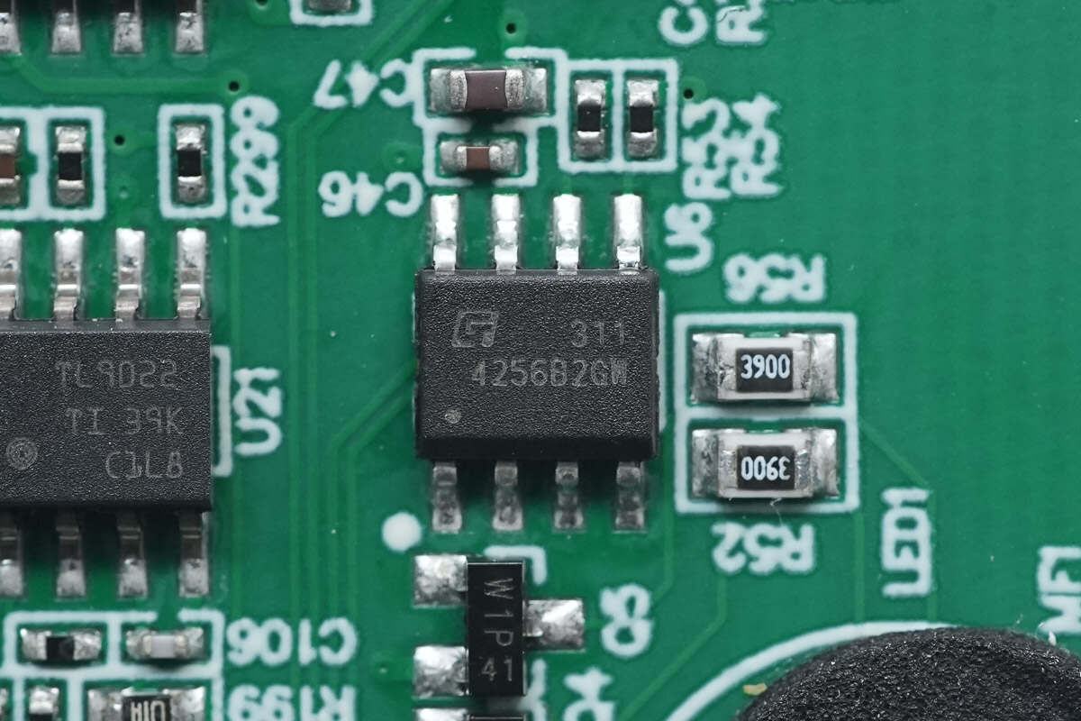 存储器来自聚辰半导体,型号GT24C256B,容量为32KB,支持1.7-5.5V工作电压,采用SOIC8封装。