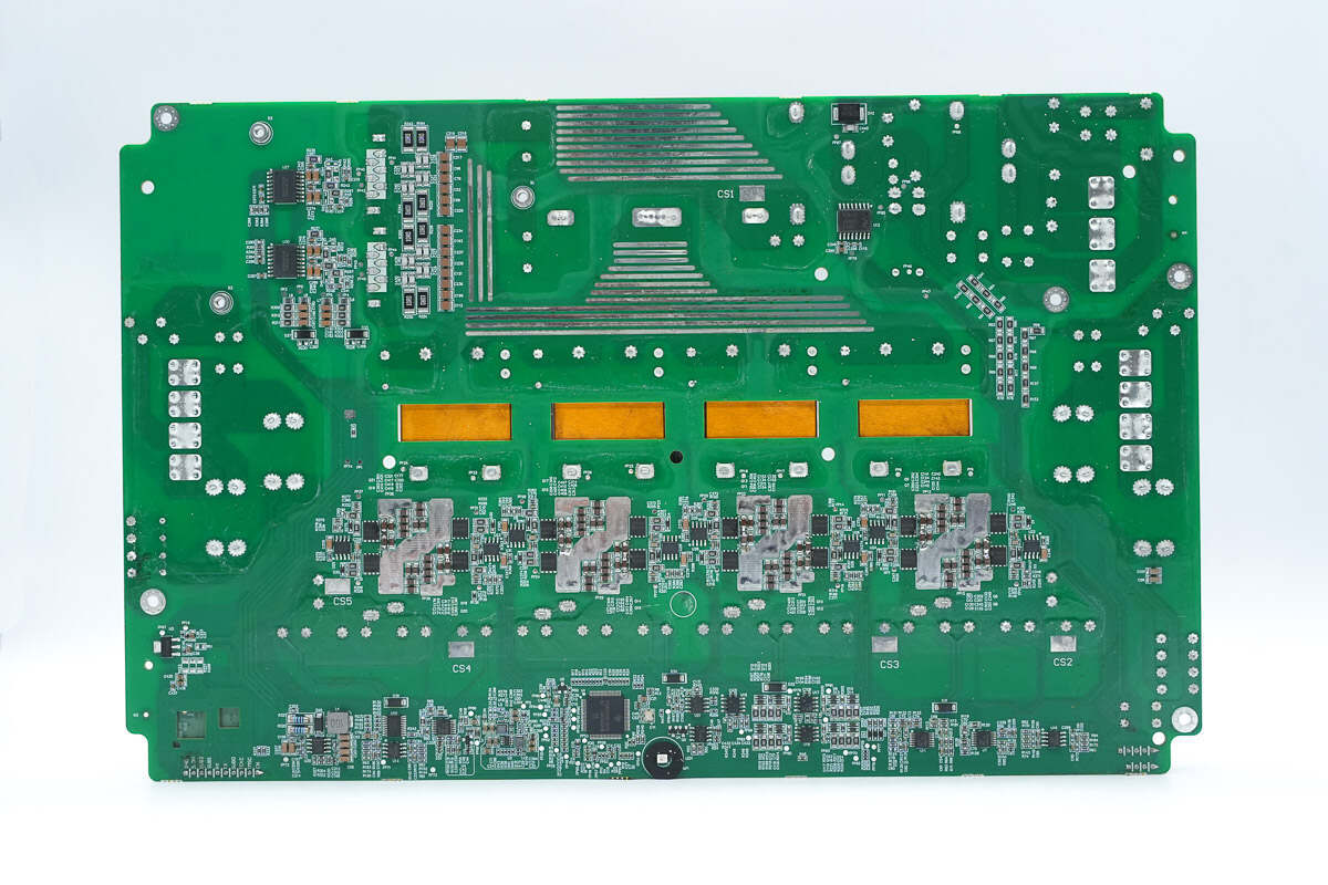 PCBA模块背面设有逆变器主控芯片,隔离驱动器,隔离电流采样芯片,驱动器,升压开关管,运放和降压转换器等芯片。