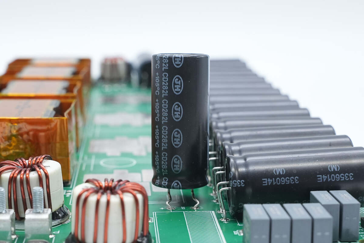 滤波电解电容来自江海,为CD282L系列长寿命低阻电解电容。