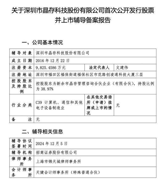 值得注意的是,晶存科技曾筹划冲击A股。2024年12月,其启动IPO辅导,彼时的辅导机构为招商证券股份有限公司,期间共进行两期辅导。