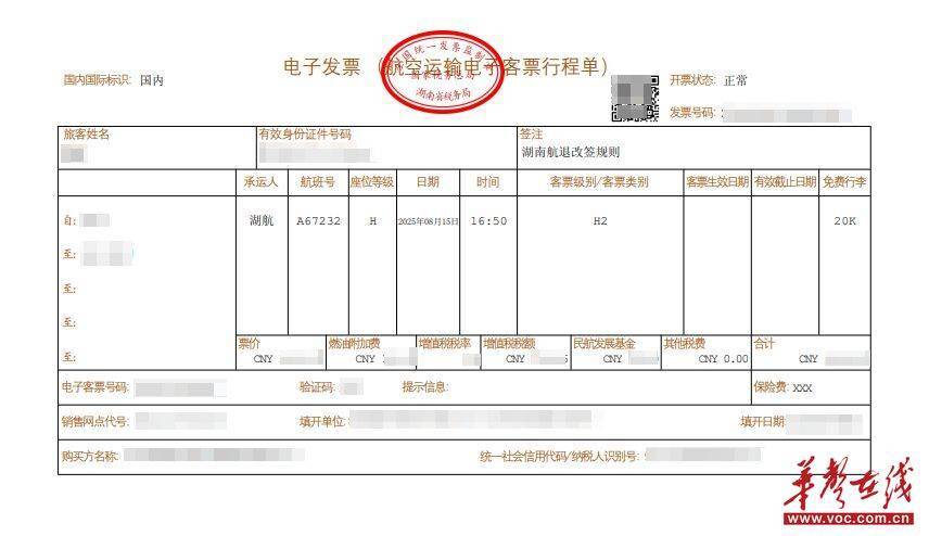 记者在湖南航空官网看到,针对不同购票渠道,湖南航空细化操作流程。直销渠道(含微信小程序、客服热线、OTA旗舰店)购票旅客,可在行程结束后180天内,通过微信小程序“服务-行程结束-报销凭证-机票款及机票变更费”自助申请,或拨打客服热线人工协助开具;销售代理渠道购票旅客,需联系原代理方申请。