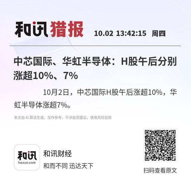 10月2日,中芯国际H股午后涨超10%,华虹半导体涨超7%。