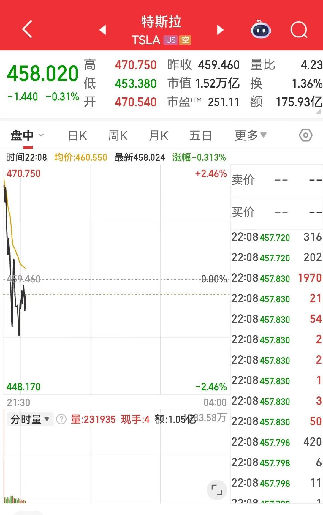 当地时间10月1日美股开盘涨跌互现,截至发稿,特斯拉报458.02美元,跌幅0.31%,开盘一度涨超2%。