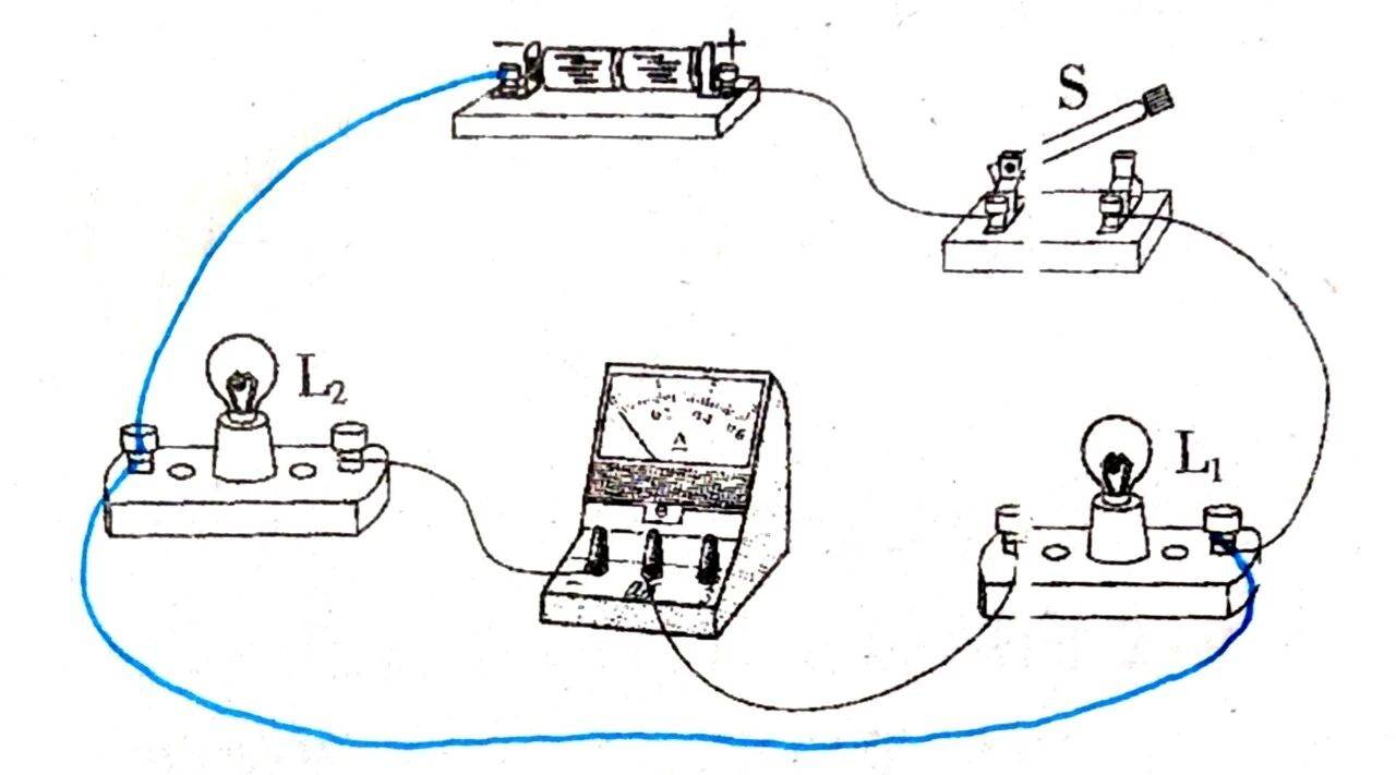 上图中,乍一看似乎差不多正确,但是仔细一看,中间蓝色导线把电流表以及右边的灯泡短路了!