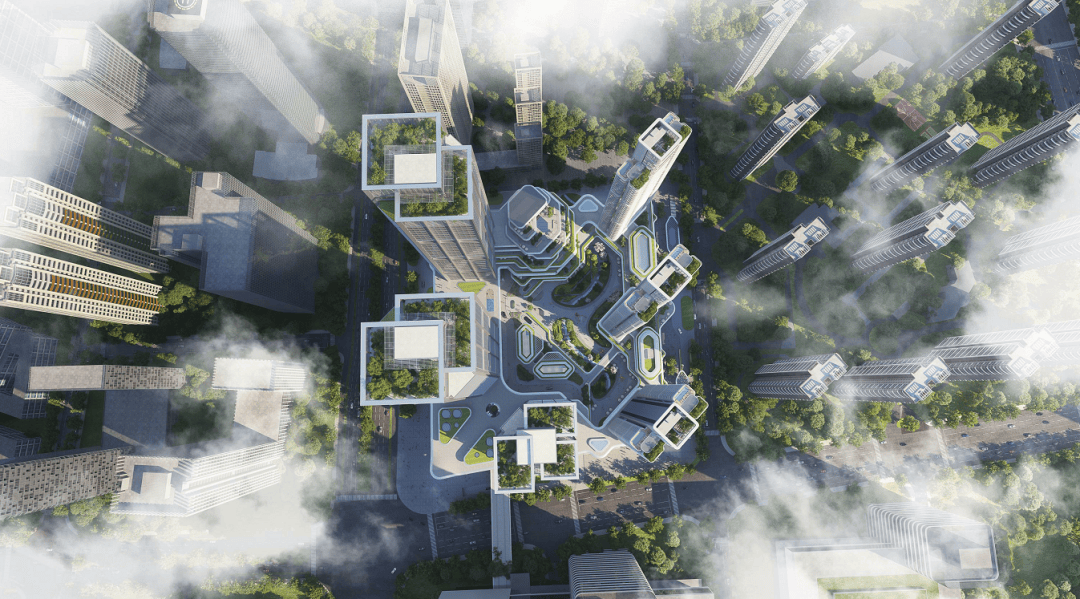 整个项目由7栋最高约200米的建筑组成,总建筑面积约50万㎡,涵盖了IT总部办公、超级孵化基地、数字经济中心、国际金融中心、全球TMT中心等丰富空间。