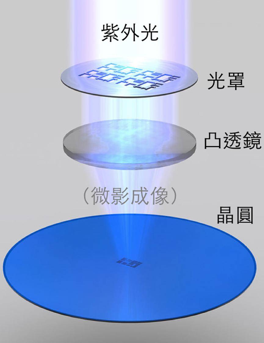一般光罩上的图案是电路设计图的 4 倍,光刻机投射光罩时,利用光线成像原理,将图像再缩小至光罩的四分之一刻至硅晶圆上,就形成了精准的芯片电路。