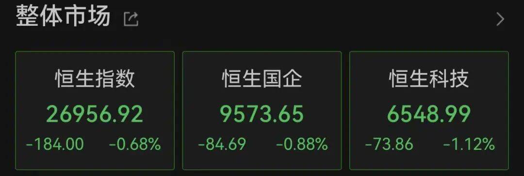 截至完稿,恒生指数微幅波动,跌超0.6%;恒生科技指数跌逾1%。