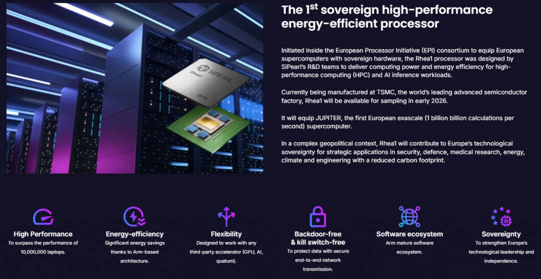 Rhea1 的设计目标是成为欧洲 E 级超级计算机的一部分,兼顾高性能计算与通用人工智能计算场景。