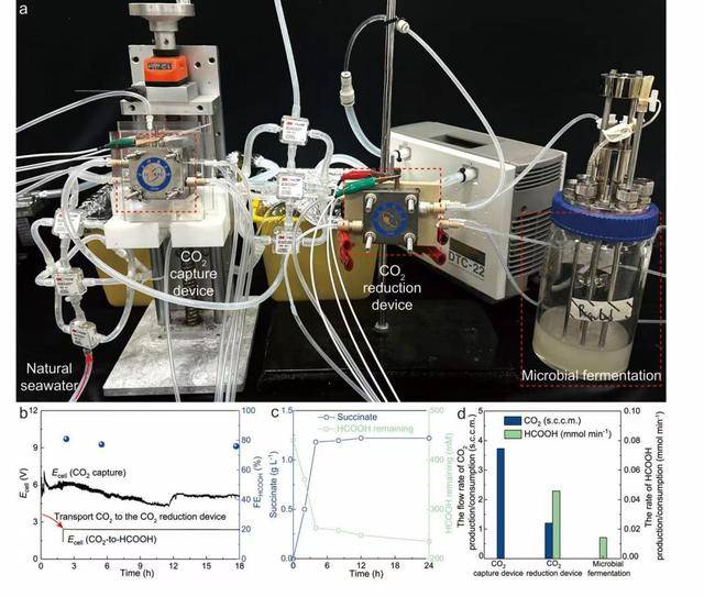 研究的首个关键环节由电子科技大学夏川团队负责,他们利用电催化技术实现了从海水中进行高效的碳捕集。研究团队设计了一种新型电解装置,实验结果显示,该装置能在天然海水里连续稳定运行超过500小时,二氧化碳捕碳效率高达70%以上,还可同步副产氢气。在经济性方面,每捕集一吨二氧化碳的成本约为229.9美元,展现出良好的实际应用前景。