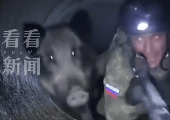近日的一段视频中,一名俄罗斯士兵钻入管道潜伏,试图渗透乌军后方。但就在紧张时刻,后方突然冲过来一个黑影,居然是一头野猪。这名士兵扭头一看,被吓得大喊大叫。