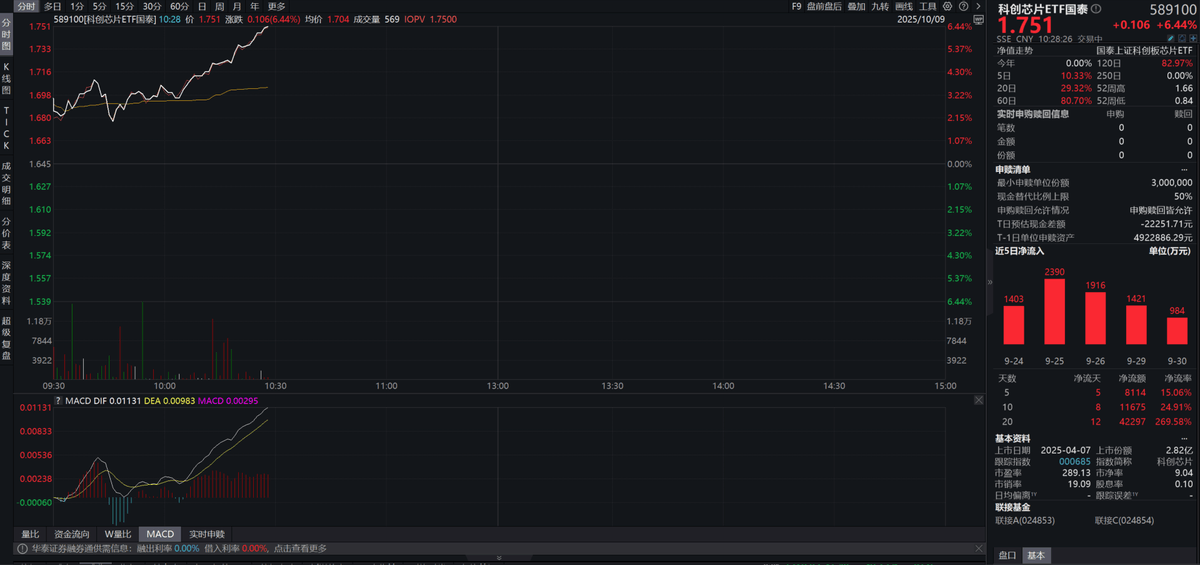 在此背景下,国产算力概念走强,科创芯片ETF国泰(589100)涨超6%,连续5日迎资金净流入。