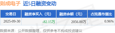 证券之星消息,9月30日,则成电子(920821)融资买入75.53万元,融资偿还157.68万元,融资净卖出82.15万元,融资余额2056.88万元。
