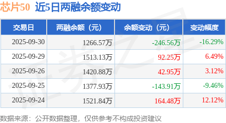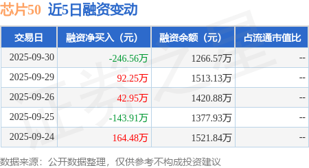 证券之星消息,9月30日,芯片50(516350)融资买入280.96万元,融资偿还527.52万元,融资净卖出246.56万元,融资余额1266.57万元。