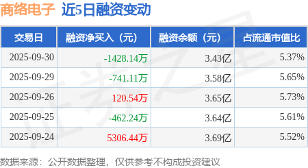 证券之星消息,9月30日,商络电子(300975)融资买入4545.56万元,融资偿还5973.7万元,融资净卖出1428.14万元,融资余额3.43亿元。