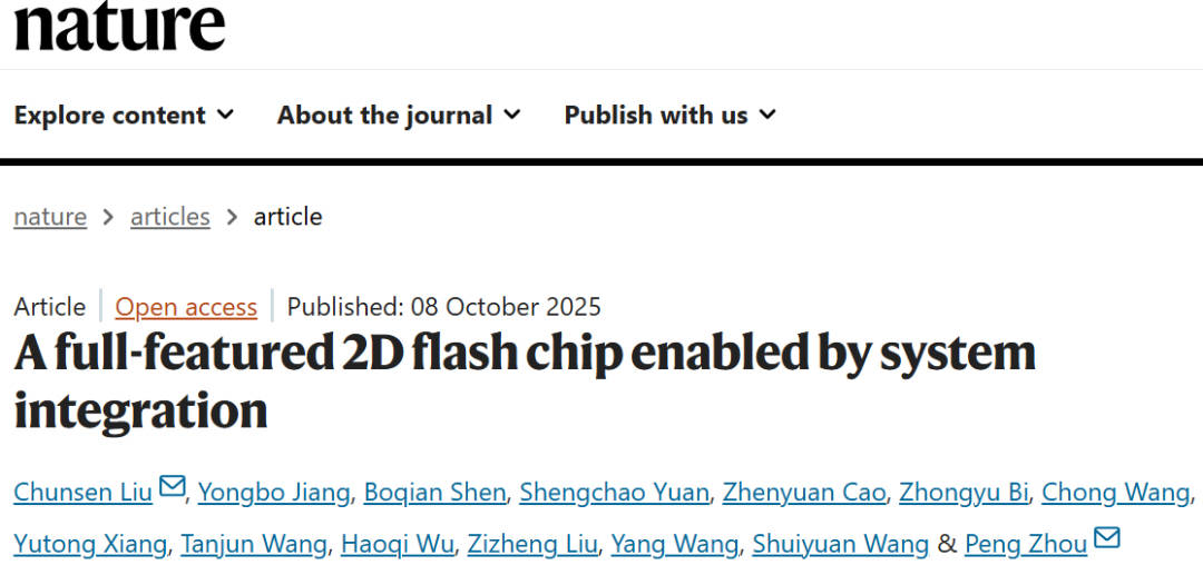 2.Liu, C., Jiang, Y., Shen, B. et al. A full-featured 2D flash chip enabled by system integration. Nature (2025).https://doi.org/10.1038/s41586-025-09621-8