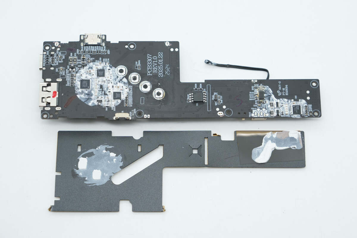 另一部分外壳底部也贴有石墨散热贴纸。