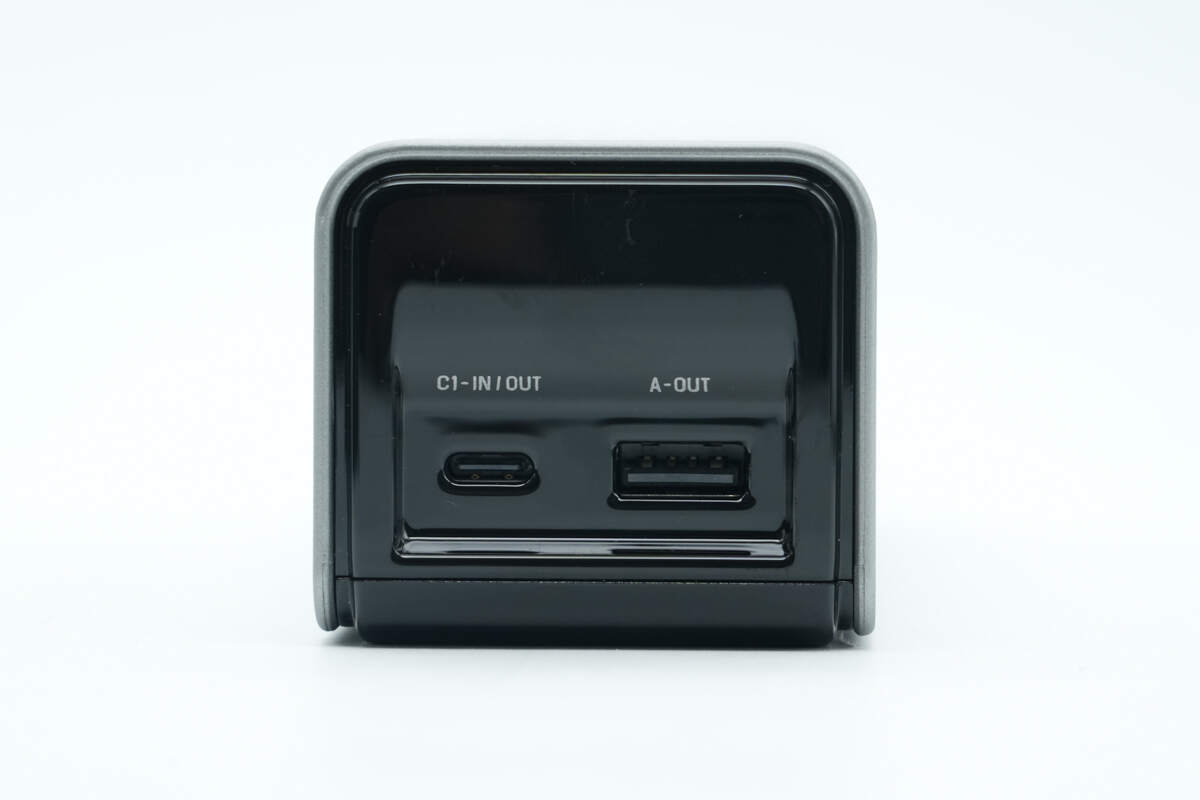 机身顶部配置USB-C1双向快充接口以及USB-A输出接口,接口旁也印有相应标识。