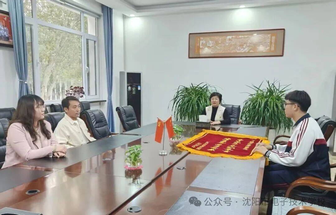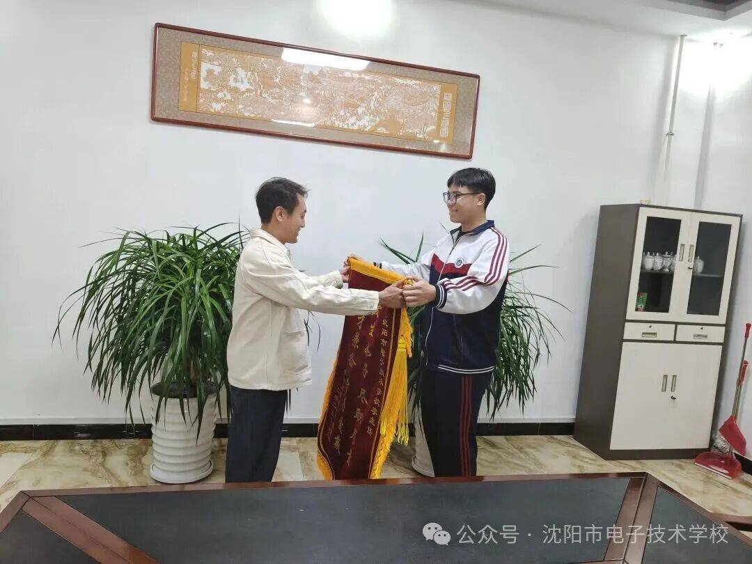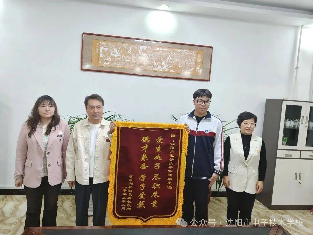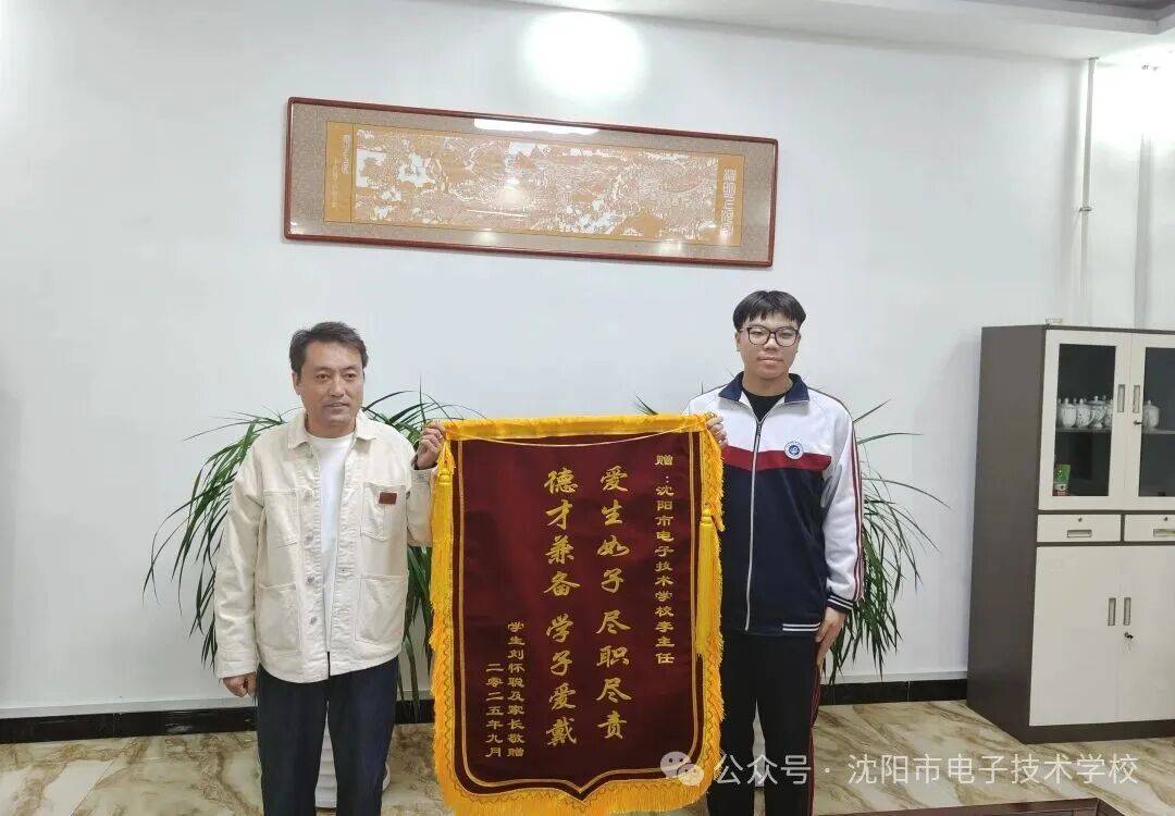 金秋十月传佳话,桃李芬芳谢师恩。10月10日下午,沈阳市电子技术学校三年五班学生刘怀聪将一份承载着家庭温暖与敬意的锦旗送到李楠主任手中,以感谢主任深夜送医的帮扶之恩,也为校园添上了一抹温暖的底色。