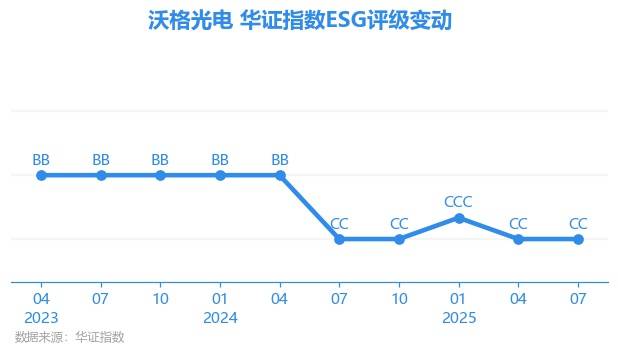 日前,华证指数公布了新一期(2025年7月31日)的ESG评级结果,沃格光电(603773.SH)获得CC评级(华证指数评级为C起至AAA九档,C为最低档,AAA为其最高一级评级/AA为其第二档),上一期(2025年4月30日)ESG评级为CC。本期ESG评级在529家电子设备、仪器和元件行业A股上市公司中排名第491(上一期排名第479)。