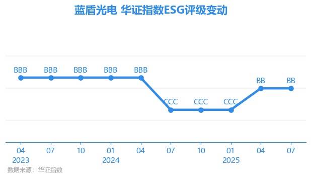日前,华证指数公布了新一期(2025年7月31日)的ESG评级结果,蓝盾光电(300862.SZ)获得BB评级(华证指数评级为C起至AAA九档,C为最低档,AAA为其最高一级评级/AA为其第二档),上一期(2025年4月30日)ESG评级为BB。本期ESG评级在529家电子设备、仪器和元件行业A股上市公司中排名第223(上一期排名第269)。