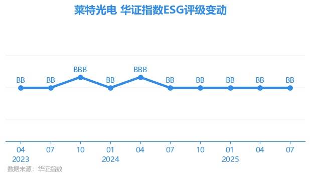 日前,华证指数公布了新一期(2025年7月31日)的ESG评级结果,莱特光电(688150.SH)获得BB评级(华证指数评级为C起至AAA九档,C为最低档,AAA为其最高一级评级/AA为其第二档),上一期(2025年4月30日)ESG评级为BB。本期ESG评级在529家电子设备、仪器和元件行业A股上市公司中排名第153(上一期排名第199)。