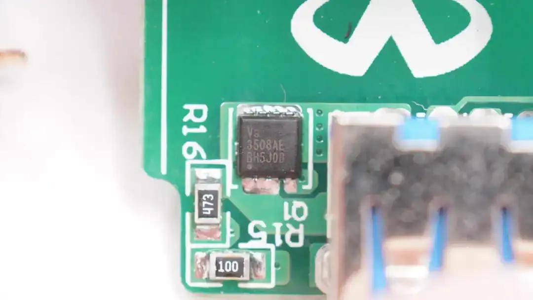 用于USB-A口的VBUS开关管来自威兆半导体,型号VS3508AE,是一颗耐压30V的PMOS,导阻8.5mΩ,采用PDFN3333封装。