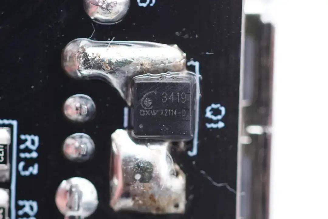同步整流管来自锐骏半导体,型号RUH120N90M,是一颗耐压120V的NMOS,导阻为6.2mΩ,采用PDFN5060封装。