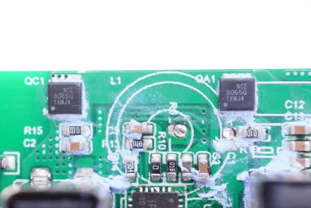 两颗新洁能NCE3065Q,耐压30V,导阻4.2mΩ,DFN3.3x3.3封装,分别作为两个接口的输出VBUS开关管。