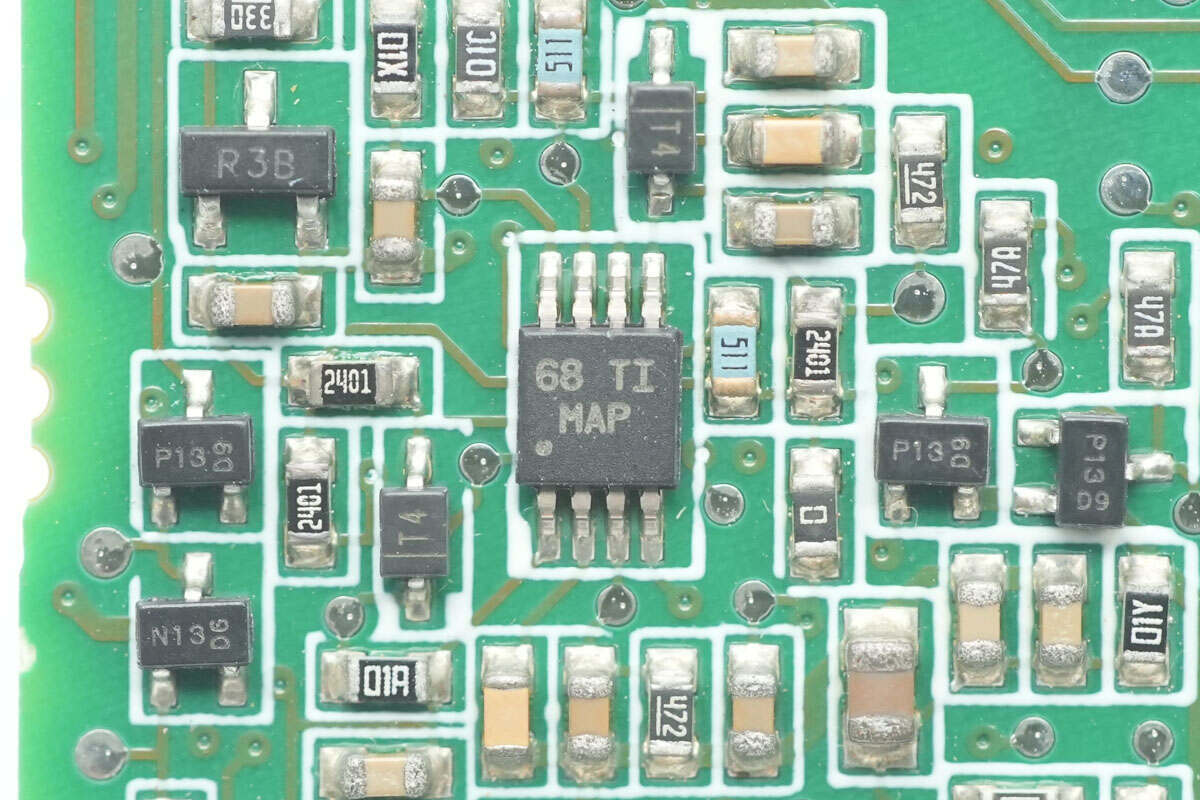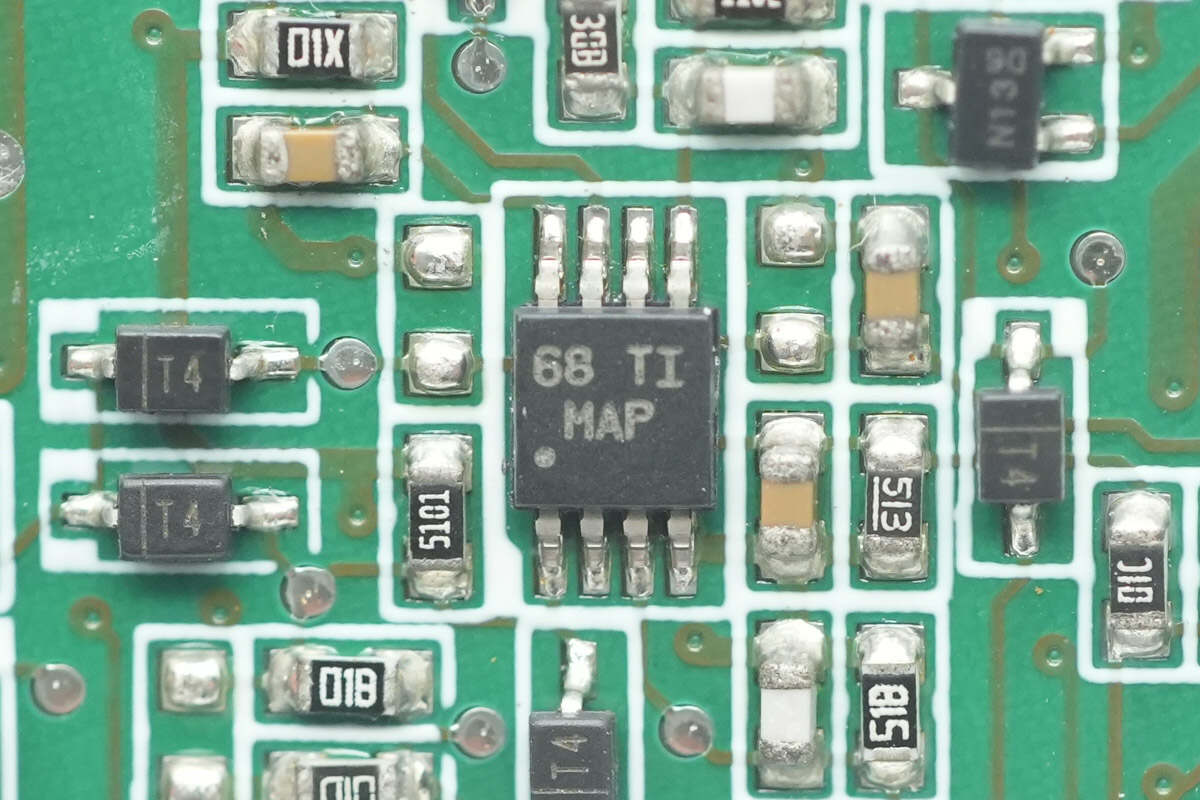 电压比较器来自德州仪器,丝印MAP,型号LM2903,为通用双路比较器,采用VSSOP8封装。
