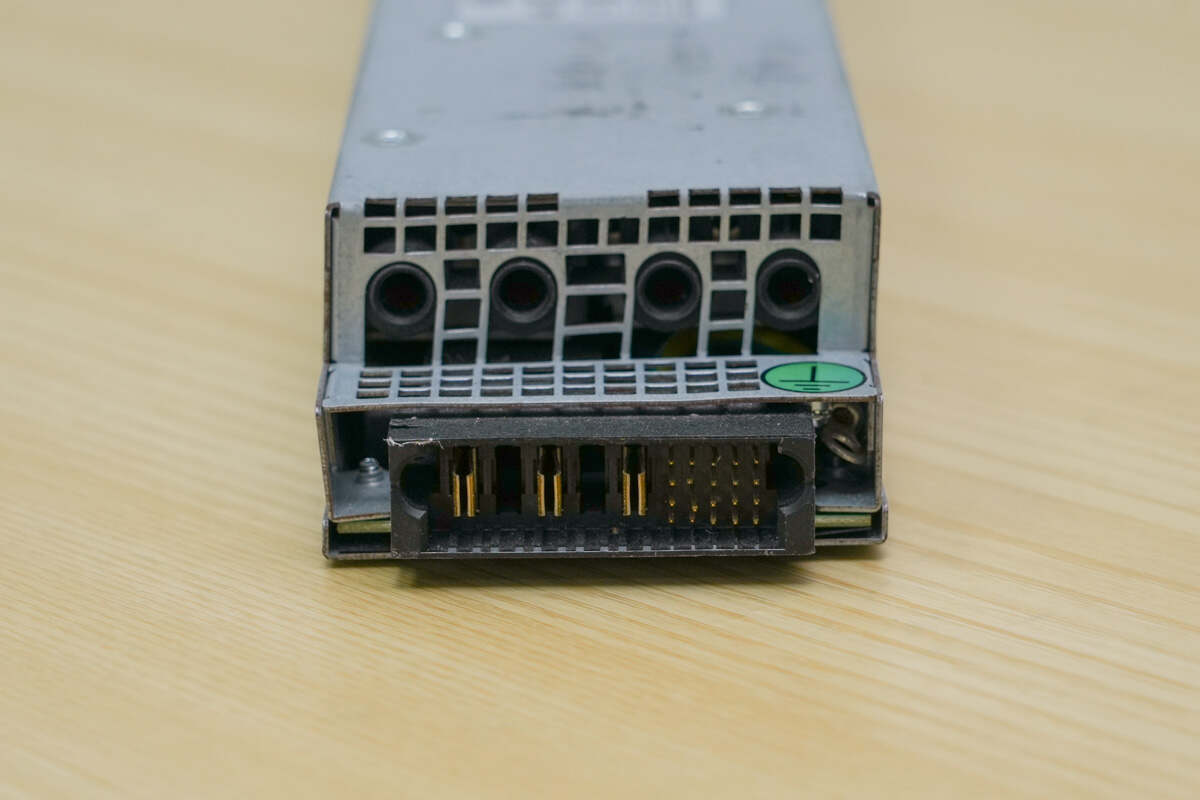 百富电子这款服务器电源为长条造型,机身正面粘贴信息标签,左侧设有安装提手,内置散热风扇,右侧设有输入和输出连接器,壳体盖板通过螺丝固定。