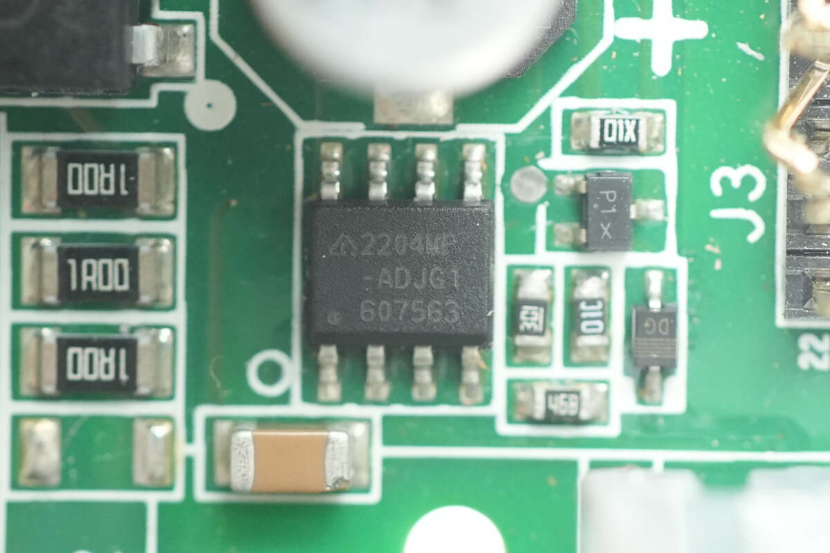 稳压芯片来自达尔,型号AP2204WP,支持2.6-24V输入电压,输出电流250mA,采用PSOP-8封装。