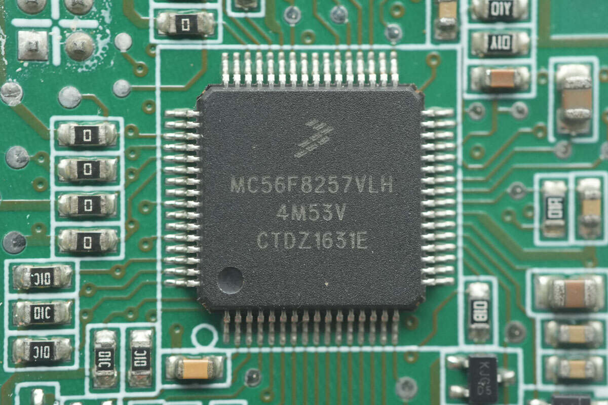 LLC控制器来自恩智浦,型号MC56F8257VLH,芯片内部集成16位56800E内核,主频为60MHz,集成64KB FLASH和8KB SRAM,支持3-3.6V工作电压,采用LQFP64封装。