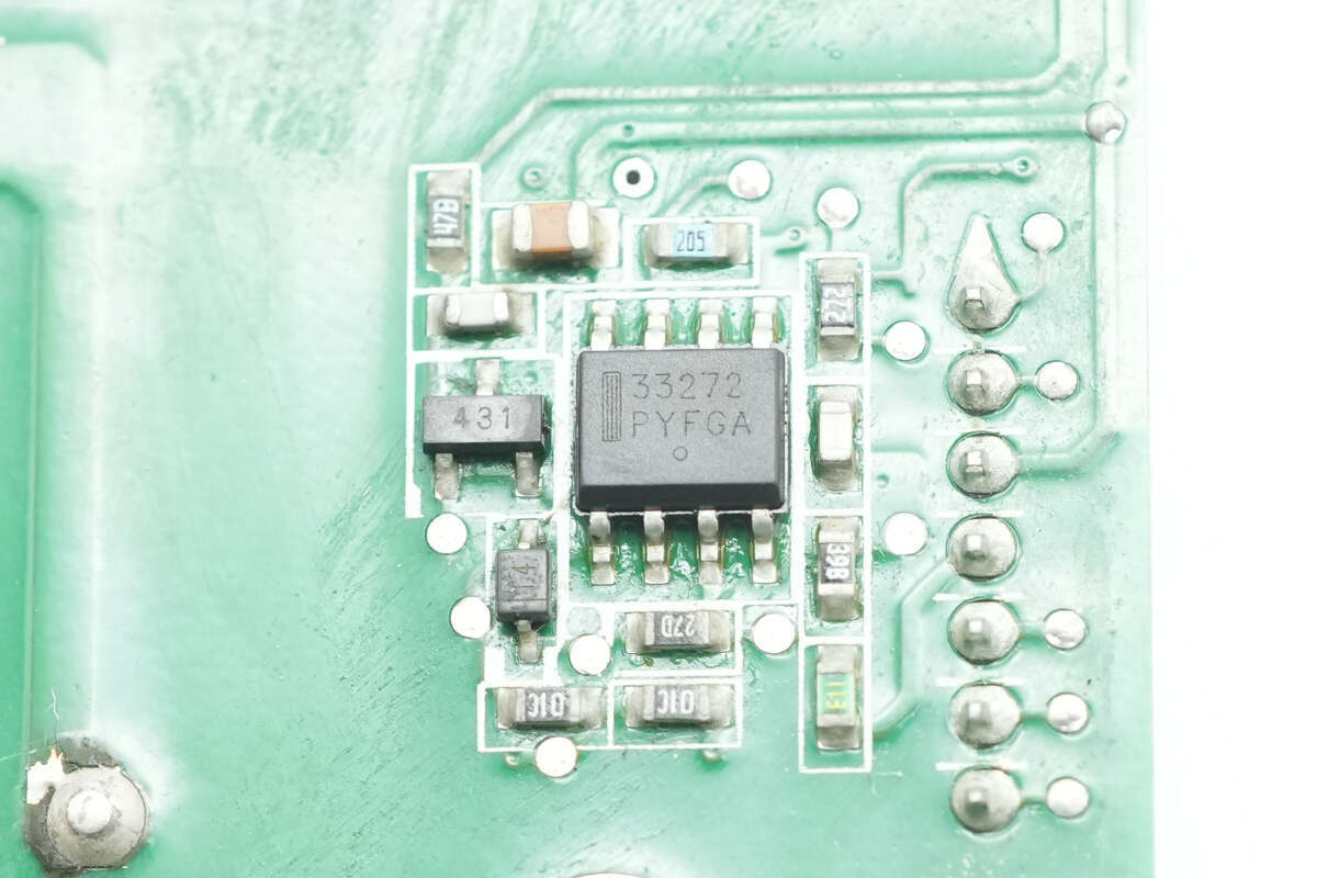 焊接拆下控制小板,小板左侧设有PFC控制器,LLC控制器,降压芯片和运放芯片。