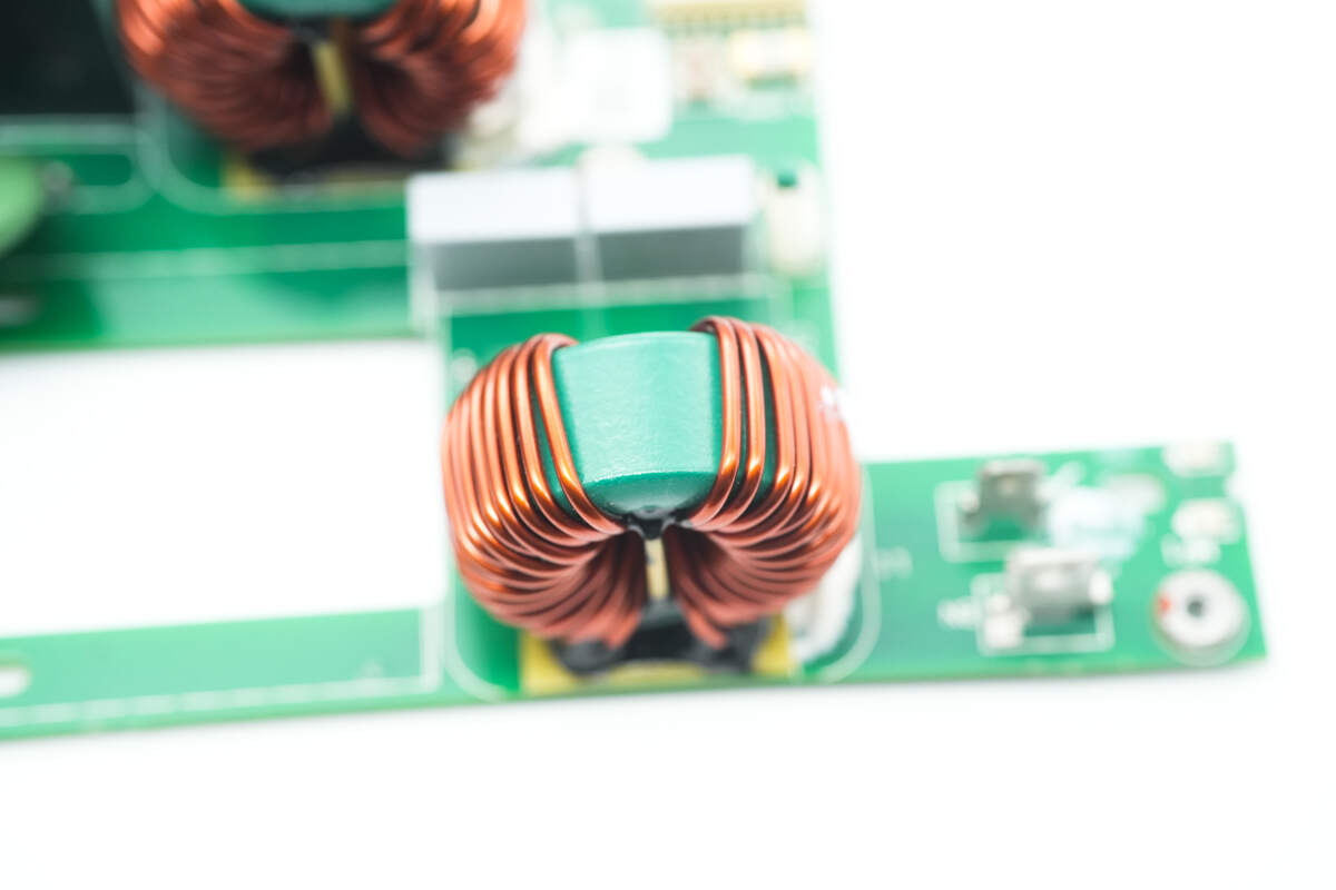 PFC升压电感采用漆包线绕制,底部设有电木板绝缘。