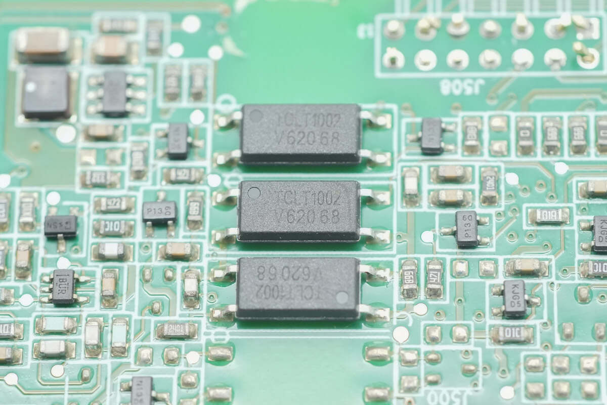 背面焊接通信光耦,比较器,运放,降压芯片和存储器。