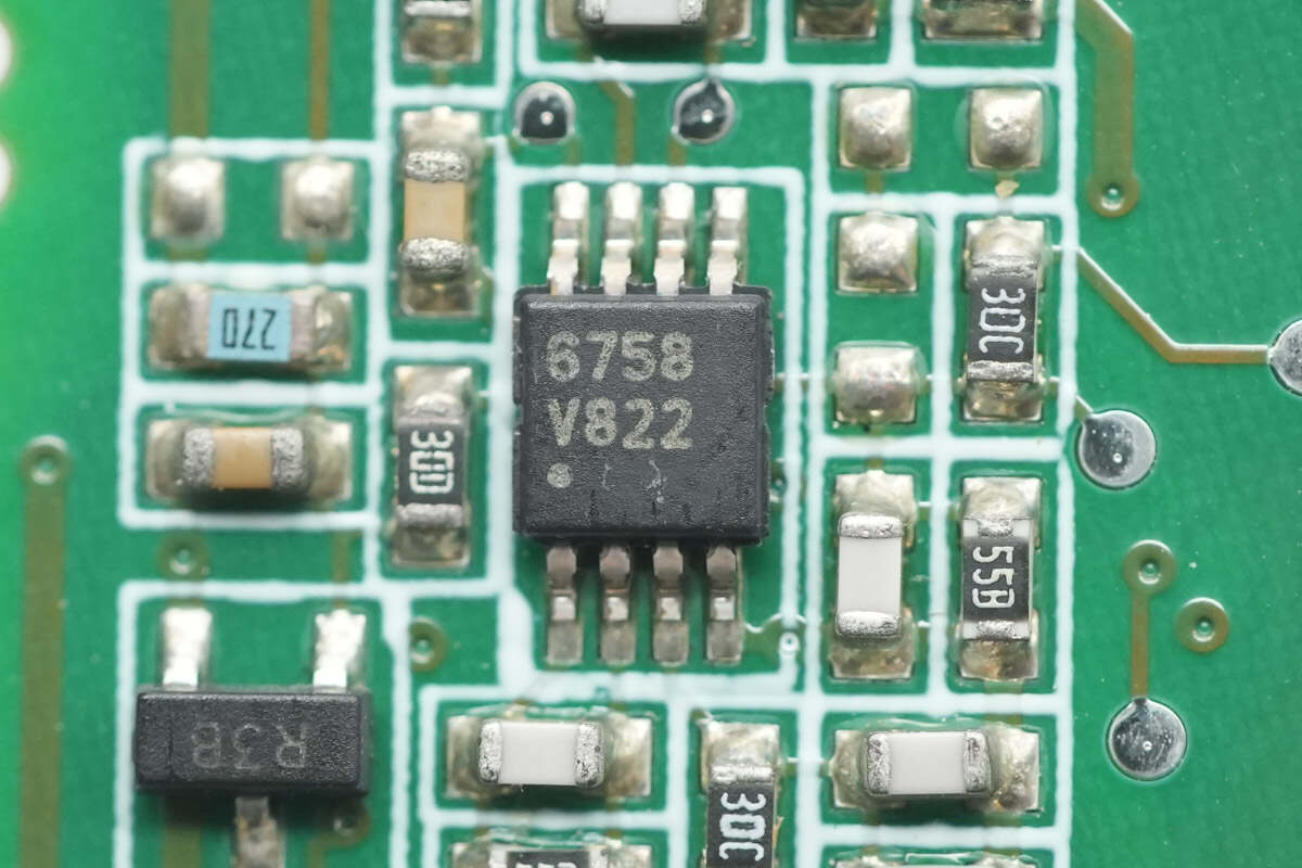运放来自德州仪器,型号LM2904,是一颗标准双运放,支持3-36V工作电压范围,采用VSSOP8封装。