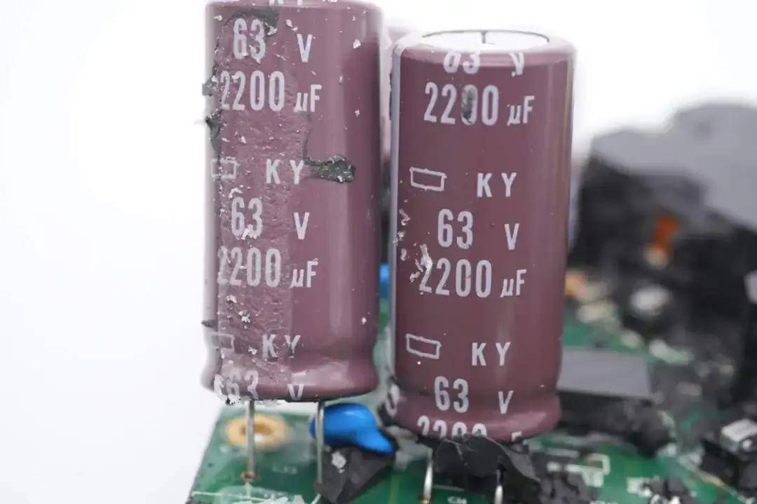 输入滤波电解电容来自贵弥功,KY系列,规格为63V 2200μF,采用塑料支架固定,五颗并联。