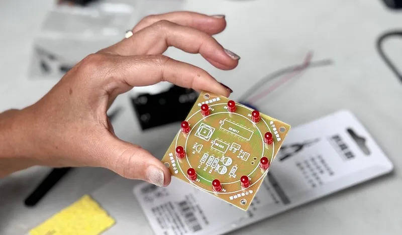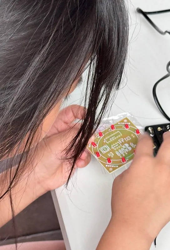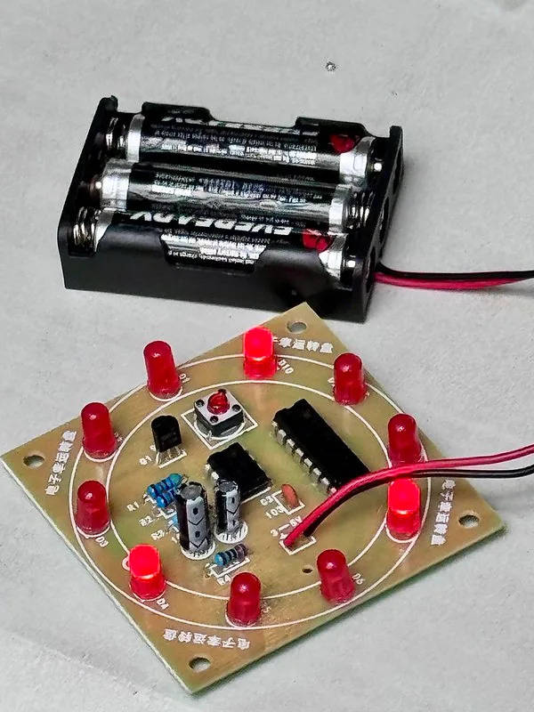 当然,这么多年过去,这教学用的产品也有少许的改良,它结合计时器与计数器逻辑设计,搭配 LED 顺序跑马灯控制,模拟「幸运转轮」的效果。实作中可以了解数位逻辑、闪烁节奏与元件控制,兼具学习与娱乐,据说目前还有不少学校使用这产品教学。