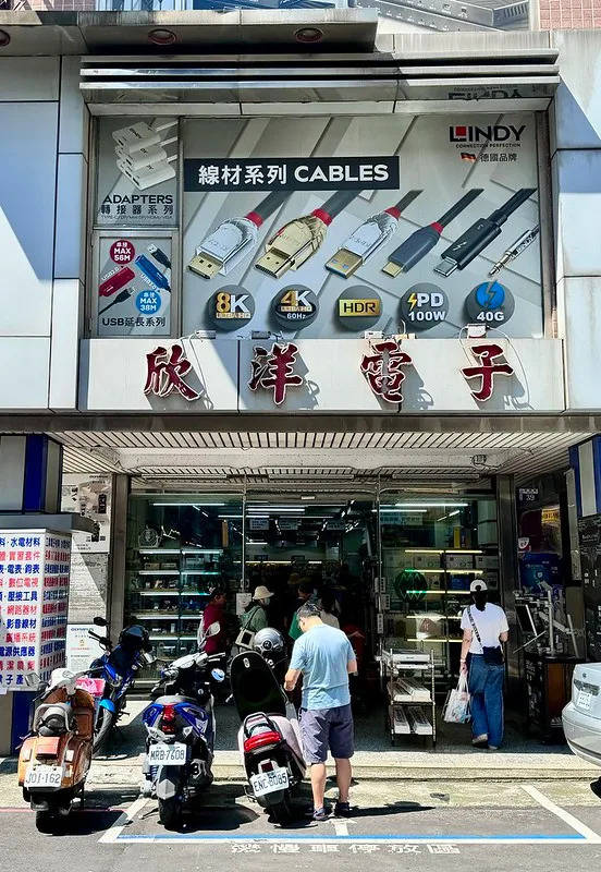 回头来看台中电子商圈其实不仅于电子街徒步区里,周边外围也有几家大型的电子零件、器材采访的商店,比方说创立至今有近30年历史的「欣洋电子」至今仍是许多台中电子迷、商务客人采购的首选,也是少数一早就营业的店家。