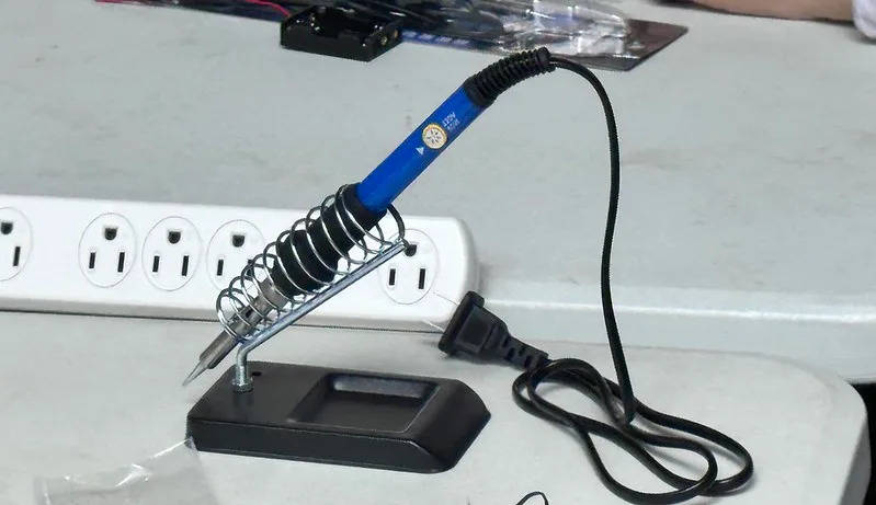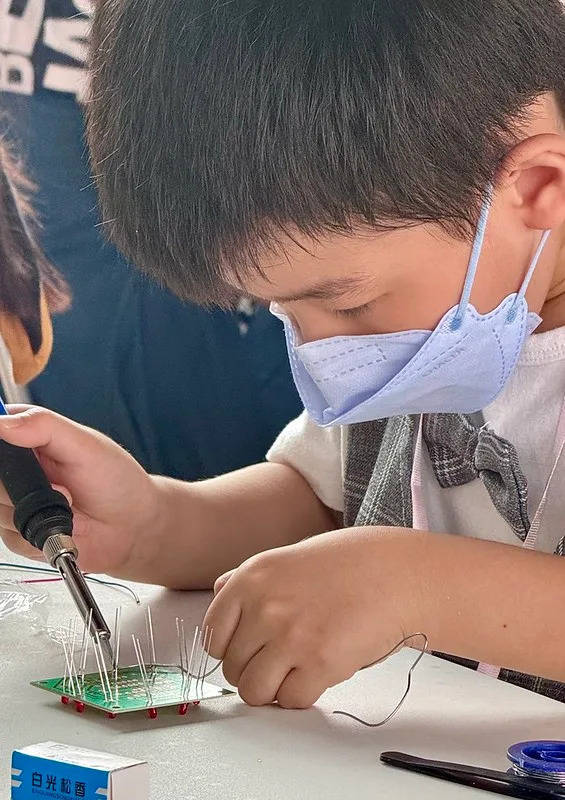 采满完所需要的零件后,大伙又回到报到的地方,商圈的老师们帮大家准备好桌椅和好久不见的电烙器。