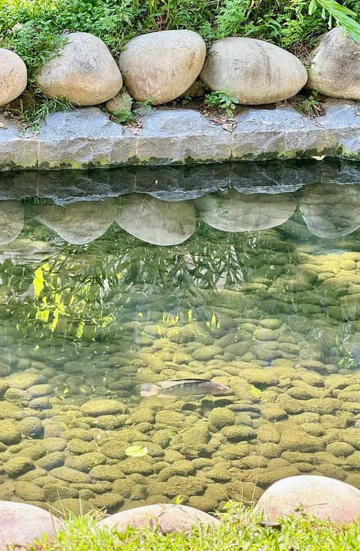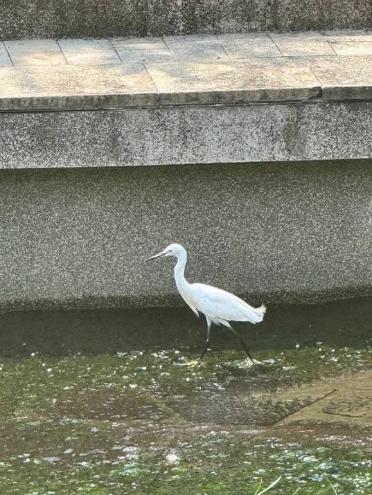 干净的河水中,时而可见的大鱼优哉的游着,却也引来了觅食的白鹭丝,也增添了游客在此散步的乐趣。