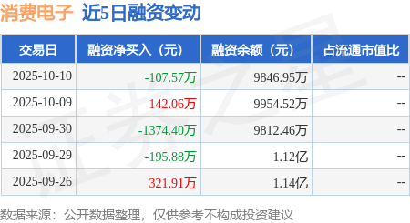 消费电子:10月10日融资买入... 证券之星消息,10月10日,消费电子(159732)融资买入2470.94万元,融资偿还2578.5...