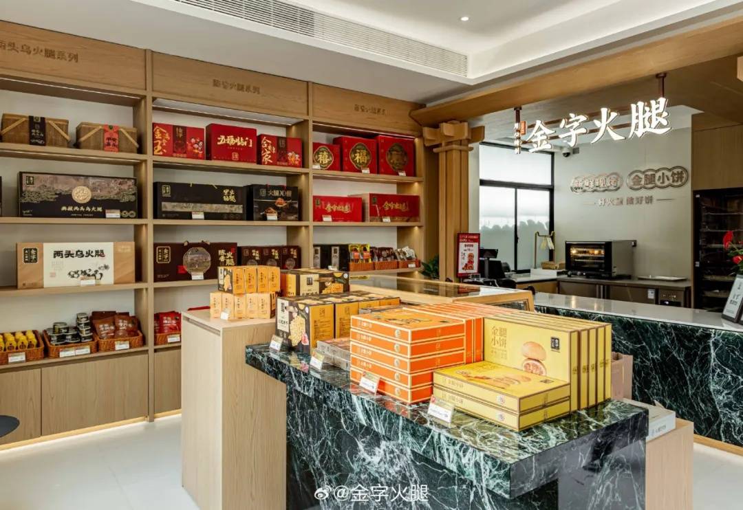 不仅如此,金字火腿还赶在国庆节前夕于金华古子城饼街开了线下打卡门店,除了常见的火腿产品外,还包括现烤的金腿小饼和火腿冰淇淋等新品。在小红书等社媒平台上,已经有消费者前往打卡、晒照片。