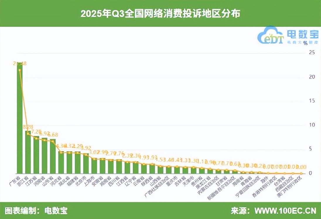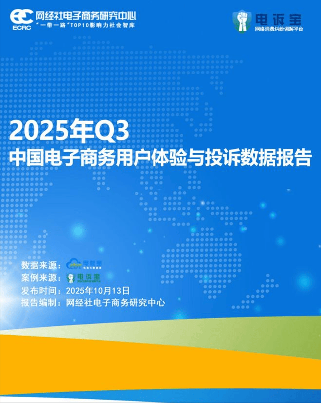 在此背景下,10月13日,依据网络消费纠纷调解平台“电诉宝”2025年三季度受理的全国互联网消费平台纠纷大量案例数据,“一带一路”TOP10影响力社会智库网经社电子商务研究中心例行发布《2025年Q3中国电子商务用户体验与投诉数据报告》。
