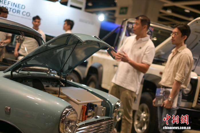图为展商现场展示将传统车辆转为电动车的设备。中新网记者 陈永诺 摄
