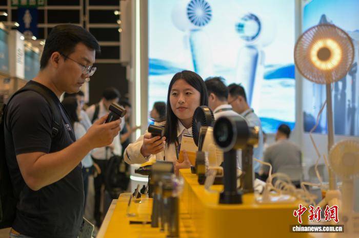 10月13日,由香港贸易发展局举办的香港秋季电子产品展、国际电子组件及生产技术展在香港会议展览中心举行。两展吸引来自20个国家及地区、逾3200家展商参展,聚焦人工智能与机器人科技、银发经济、数码娱乐、尖端电子组件及技术等。图为买家(左二)观看展商的商品。中新网记者 陈永诺 摄