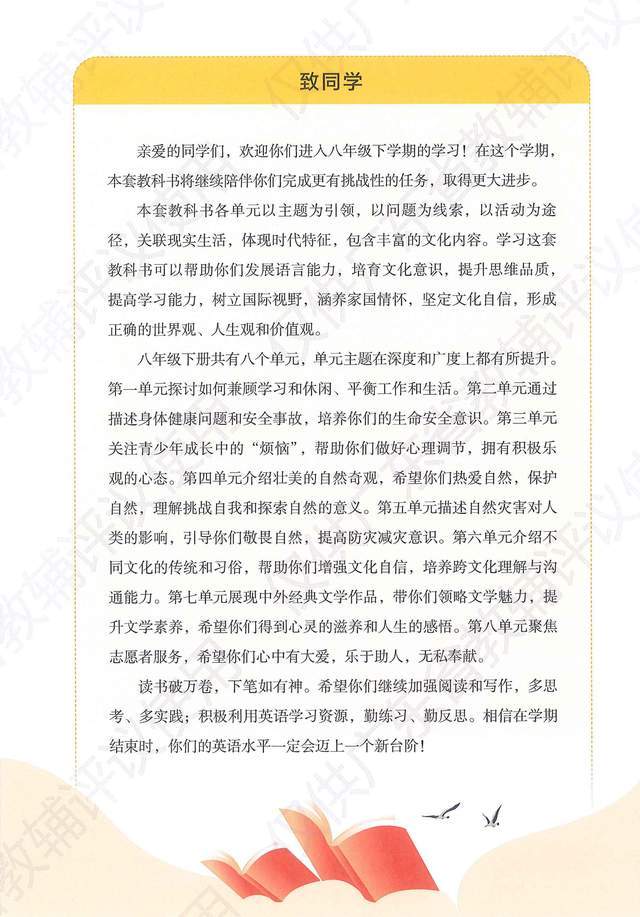 2026年春季季初中八年级学生将使用2024新课标改版后新版教材!为了方便广大学生在寒假预习新学期的课本知识,我们整理了人教版版八年级英语下册电子课本,以图片的形式呈现给大家,希望对同学们的寒假学习有所帮助。