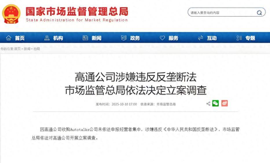 【导语:10月10日,国家市场监督管理总局发布公告称,高通公司涉嫌违反《中华人民共和国反垄断法》,市场监管总局依法对其开展立案调查。在智能座舱领域顺风顺水的高通,其未来在国内的发展增添了诸多不确定性。】