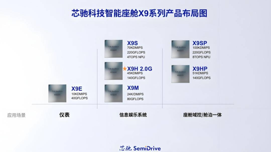 在智能座舱芯片领域,芯驰科技被认为是目前国内最接近高通的企业。在去年的北京车展上,芯驰科技发布了最新的X9CC座舱芯片,AI算力是上一代的3-5倍。具体来看,在性能参数上,这款芯片产品和高通目前最领先的,也是市场上被最广泛采用的8295芯片相当。X9CC的CPU算力200KDMIPS,NPU算力为40TOPS,可以支持本地化部署大模型。高通8295达到CPU算力230K DMIPS,NPU算力30TOPS。除了性能达到同一水平线,芯驰科技也寻求和高通打差异化竞争,深耕高通覆盖不到的像15万及以下级别市场。在去年的北京车展上,芯驰科技官宣其已经出货了450万片芯片,包括300万片的座舱芯片和150万片的MCU。在奇瑞、上汽、长安、广汽等主流车企的产品上都可以发现芯驰科技芯片的身影。未来,凭借着高通平替的定位,芯驰科技还有比较广阔的成长空间。
